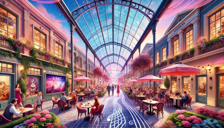 Music World’s glass-covered pathways will draw upon these examples to create something truly unique—an environment where guests feel transported into a world of elegance and inspiration.